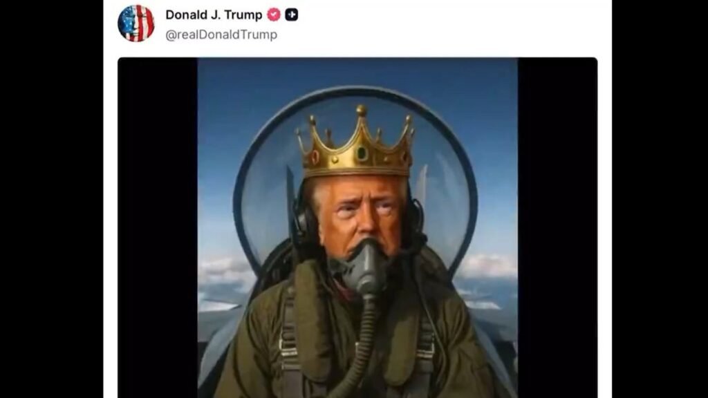 O presidente dos EUA, Donald Trump, divulgou um vídeo feito por inteligência artificial neste domingo, 19. No vídeo, Trump usa